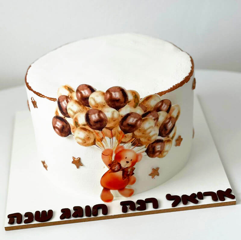 עוגת זילוף עם דובי ובלון לגיל שנה